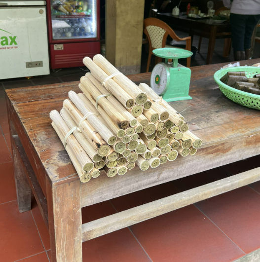 가장 신기한 주전부리는 대나무에 들어간 찰밥이였다. 베트남 이름은 Cơm lam. 특별한 맛은 없었다. 하지만 시각적인 신기함과 만들어지는 과정을 보여주는 사장님의 열정이 살 수 밖에 없게 만들었다. 원래 구입을 하게 되면 불에 다시 데워주는데 우리는 그냥 먹었다. 대나무를 까는 과정은 다소 어렵지만 밥맛은 매우 잘 지은 찰밥의 맛이였다. 고소함이 가득했다.