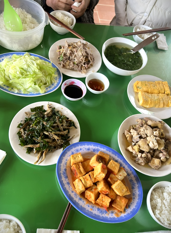 점심시간은 다른 휴게소 이동 후 먹었다. 테이블은 총 4개였고 사람들끼리 모여서 밥을 먹었다. 같이 지금까지 차를 타고 왔지만 2박 3일 여행 메이트와 이야기를 나누는 첫시간이였다. 메뉴는 베트남 가정식 이였다. 하지만 맛은 강하지 않고 누구나 먹을 수 있을 정도로 적당한 맛이었다. 같은 테이블이신 베트남 아저씨께서는 말문을 트고 싶으셨는지 사이공맥주를 하나 사오셔서 주셨다. 상호간 간단한 호구조사를 마쳤다. 베트남어 듣기평가 한다고 힘들었지만 서로를 알아가는 시간이라 즐겁기도 했다.