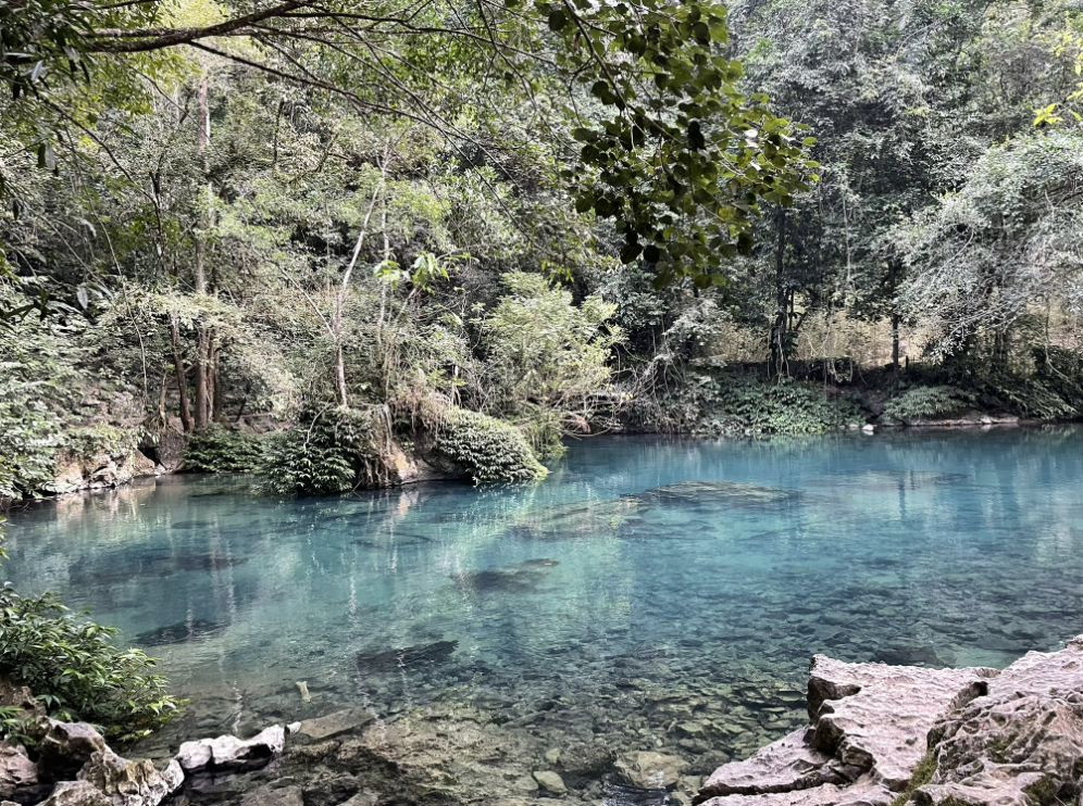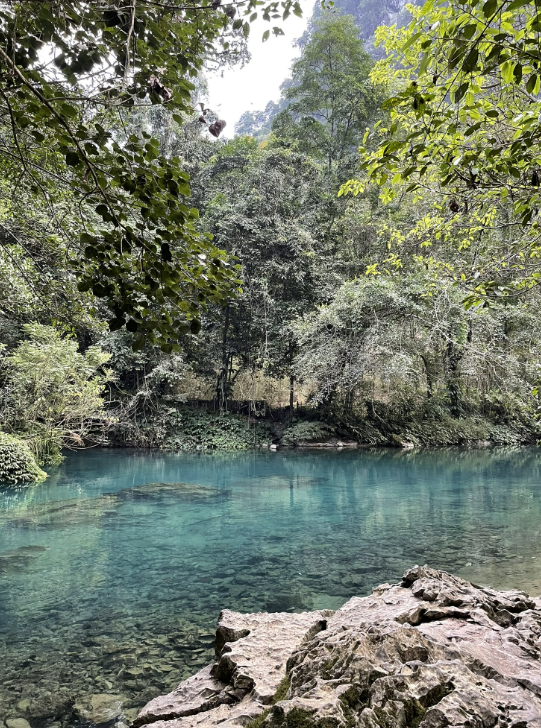 동굴을 나오고 다시 주차장으로 돌아가기 까지 크리스탈 빛이 가득한 하천을 지나게 된다. 빛이 너무 인상적으로 아름다웠는데 생각을 해보니 바로 옆에 중국이라 우리로 치면 최전방인데 이렇게 아름다워도 되나? 싶었다. 어쩃든 산책을 하면서 마주한 풍경은 아름다웠고, 9시간 좌우로 흔들리던 여행길의 피곤이 보상받는 느낌이였다.