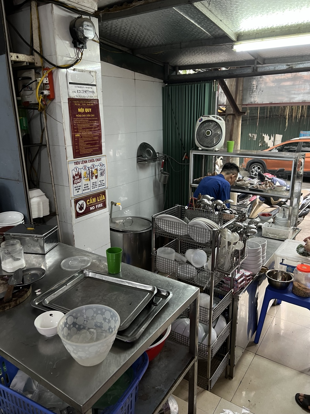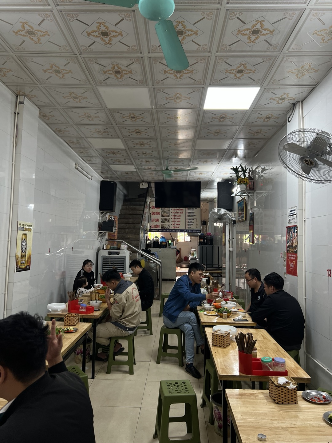 죽과 내장들이 있는 메인주방은 아저씨만 출입이 가능한듯 하다. 손님들이 앉는 내부는 협소하며 손님이 많을떄는 다닥다닥 붙어 앉아야 한다.