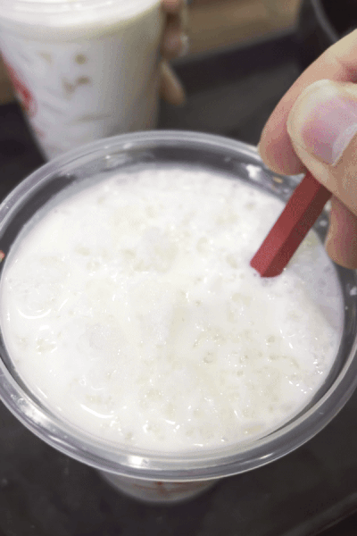 얼음을 넣으면 넣으면 음료가 완성된다. 고소한 코코넛 밀크의 맛이 인상적이다. 솔직히 말없이 집중해서 먹으면 20초내에 섭취 가능이다.