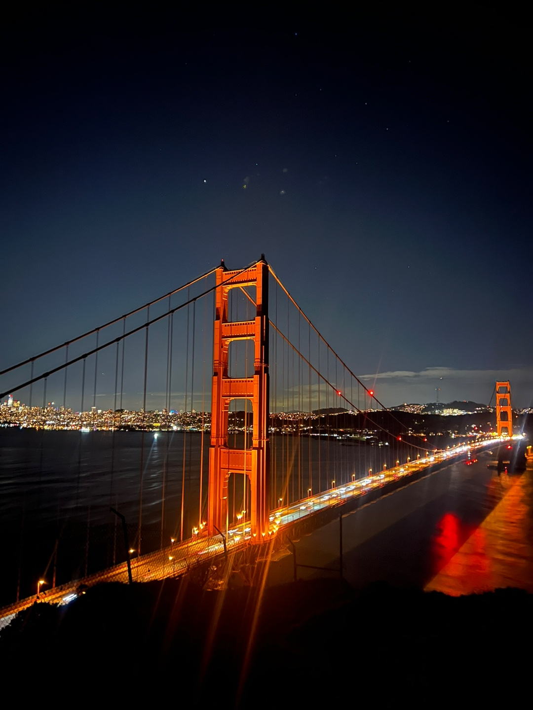 저녁에 올라가는 길은 가로등이 없어 힘들 수 있다. 하지만 금문교의 야경이 한눈에 보이는 아주 전망이 좋은 곳이다. 올라가는 길 중간중간 전망을 볼 수 있는 장소가 있지만, 너무 어두워 약간 무섭기도 했다. 그래도 목적지에 도착하면 다리의 불빛 떄문에 무서움이 다소 사라지고 야경의 아름다움에 마음이 풀리기 시작한다. 전문적인 카메라를 가져오면 더 예쁜 사진을 얻을 수 있을 것 같다는 생각이 들었다.