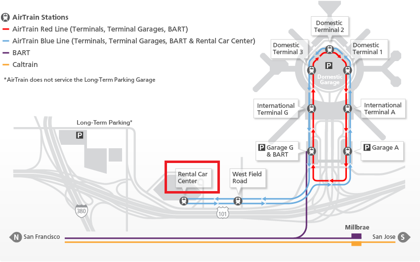 렌트카는 공항에서 바로 받지 못하고 International Terminal G gate에서 Rent car center까지 Air tran blue line을 이용하여 3정거장 정도를 이동해야 한다.