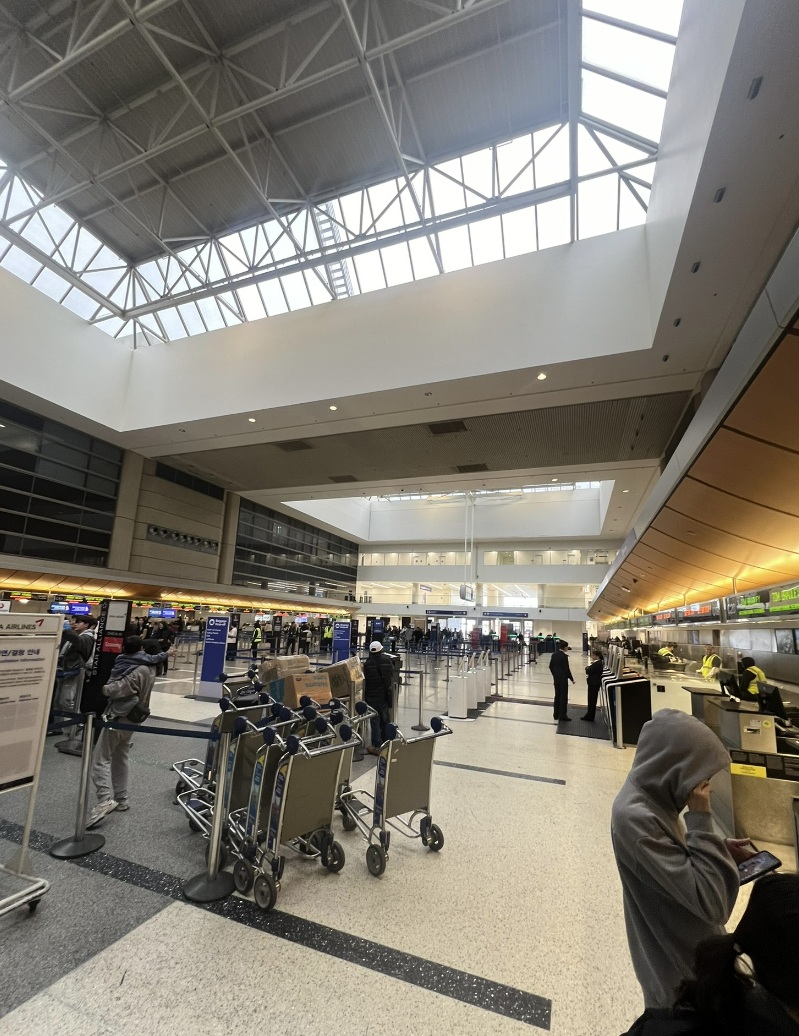버스를 국내선을 잘 못 내려버렸다. 국제공항은 첫번쨰 드롭포인트가 아닌 조금 더 들어가야 한다(주의). 국제공항 자체는 생각보다 많이 작고. 차량들로 복잡했다. 그리고 사람들도 엄청 붐볐고. 아쉬웠던 건 아시아나 체크인 떄 기계로 체크인을 할수는 있지만, 수화물 Drop을 할 수 있는 장소가 없어서 어차피 줄을 길게 서야했다. 이 포인트가 많이 아쉬웠다.