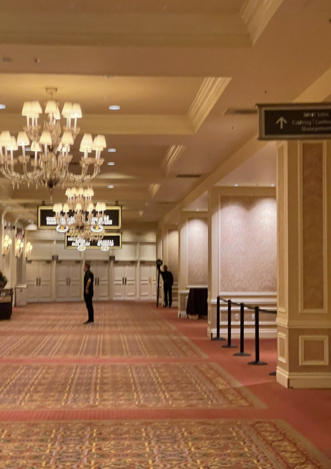 호텔을 지나 Sphere로 들어가는 길은 공항같다. 무빙워크도 있었다. 입구에 도착하면 표를 검사하고 가방검사를 한다. 가방이 너무 클경우 보관소에 보관하여야 한다. 작은 가방 같은 경우는 직원들이 통과시켜주었다. 드디어 입장을 하면 관객과 문답을 할 수 있는 AI로봇이 서있다. 관객들이 질문을 하면 로봇이 대답을 해주는데 모습이 약간 섬득했다. 내 일자리도 저 친구가 가져가고..저렇게 똑똑하면 우리는 뭐 먹고사나 싶다.