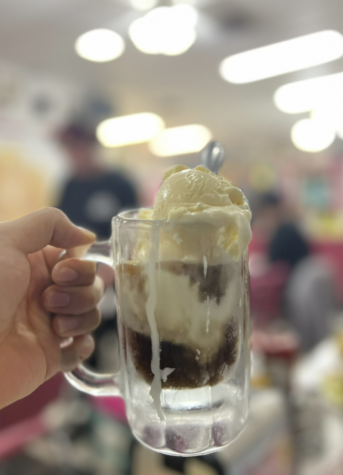 음식이 드디어 나왔다. 나는 스파게티, 친구들은 스테이크. 약간 기대했는데 스파게티는 그냥 예전 고등학교 때 급식에서 먹었던 느낌이였다. 약간 실망했다. 하지만 이집의 하이라이트인 Root beer를 먹었다. Root beer라는 음료에 아이스크림을 섞어 먹는다. Root beer 자체는 솔의 눈과 같은 청량한 맛이 강했고, 아이스크림과 같이 먹으니 단맛과 부드러움이 추가되었다. 잘 어울리는 조합이였다. 역시 미국형님들도 맛잘알이다.