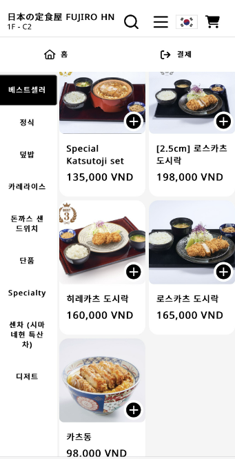 테이블 위에 QR code가 있고, 스캔을 하면 주문창으로 넘어간다. 한국어로 메뉴를 볼 수 있어 메뉴선정에 어려움은 없다.