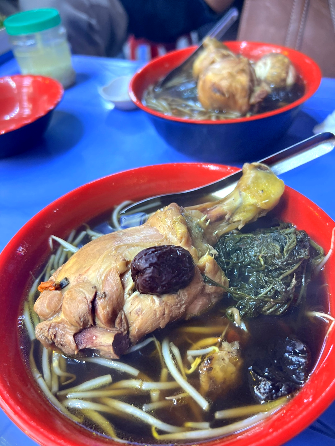 국물의 색은 한약재와 함께 끓여 흑색으로 보여 매우 쓴것 같이 보이지만, 생각보다 단맛이 있어 씁쓸한 한약의 맛을 덮어준다.