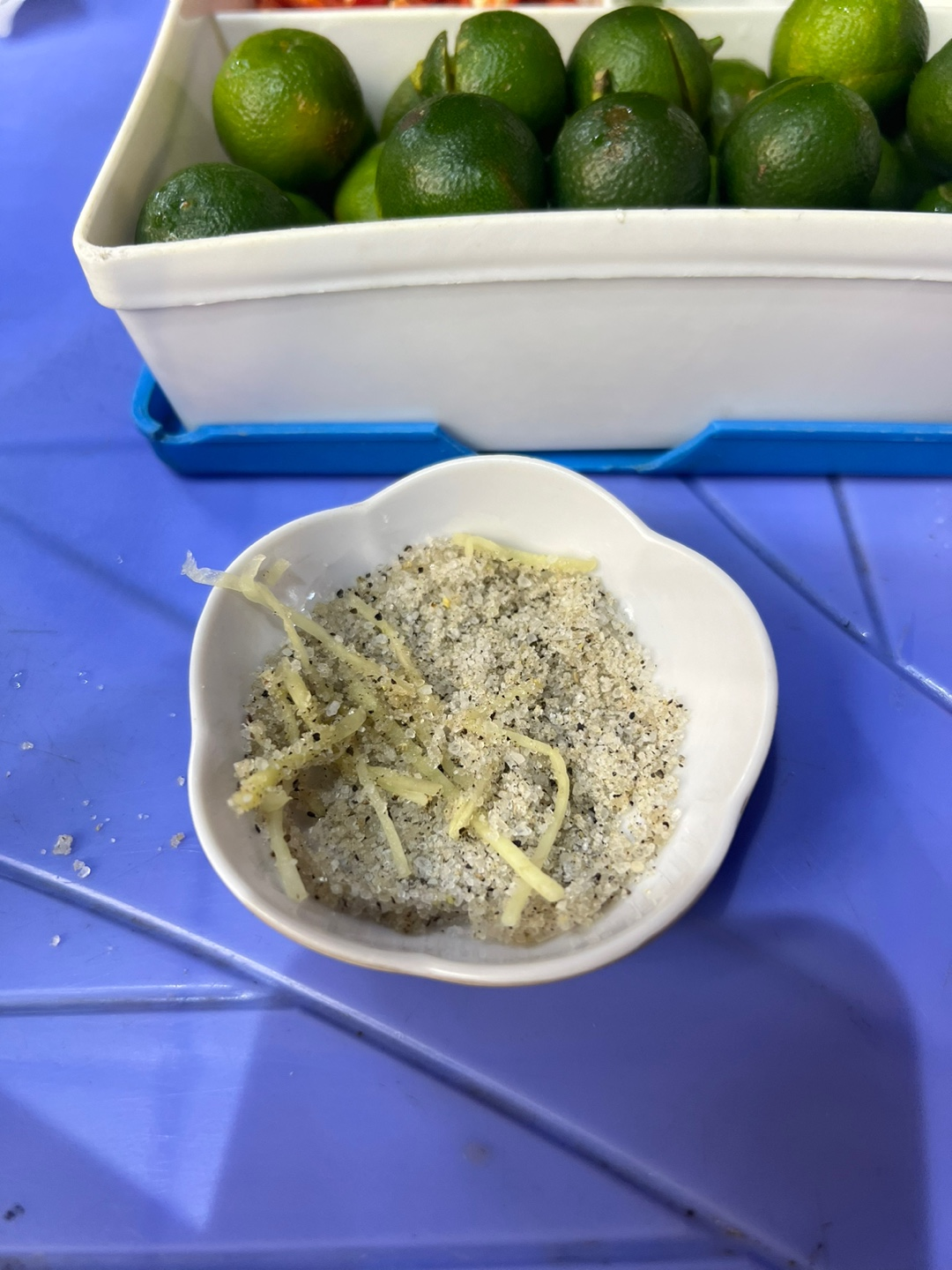 베트남 음식 답게 각종 야채와 라임으로 함께 먹는다. 보통 소금에 고추와 라임즙을 함께 먹지만, 한국인 입맛에는 간단하게 소금 + 생강의 맛이 적당했다. 그리고 약간 느끼해질 즈음 마늘절임을 먹는것도 좋았다. 한국 사람은 역시 마늘이다.