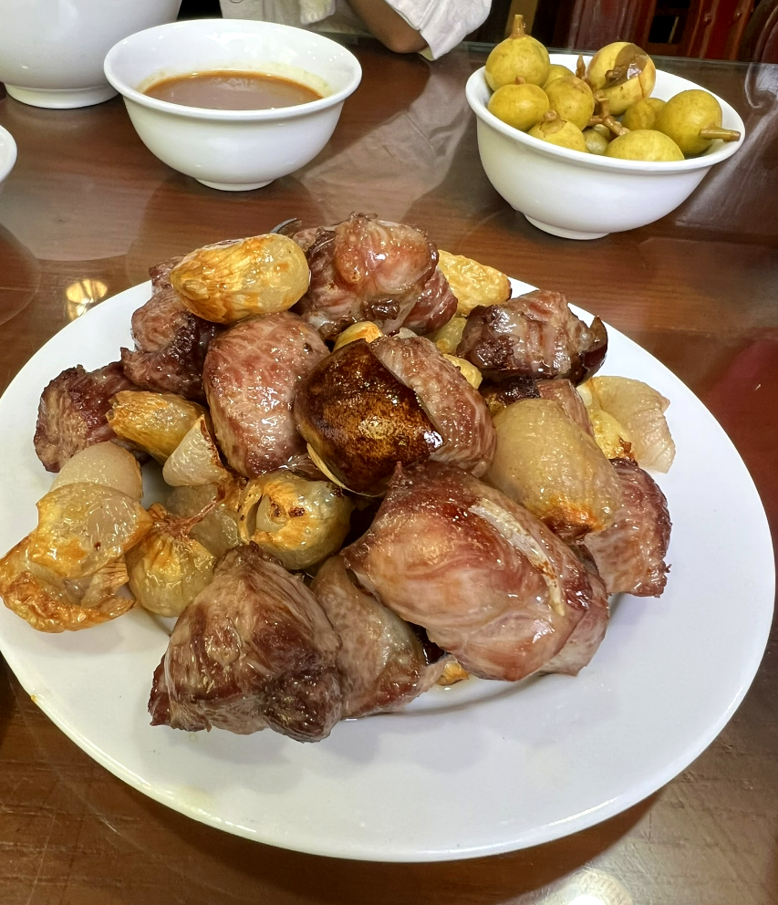 닌빈의 유명한 염소고기 전문점이다. 식당은 여느 베트남 관광지 식당답게 자연과 함께하고 있다. 고기는 한국사람 기준으로 다소 질겼다. 한국 사람들은 부드러운 고기를 최상으로 생각하지만, 베트남 사람들은 쫄깃함을 즐긴다고 들었기에. 그래도 수육은 부득부들 맛있었다.