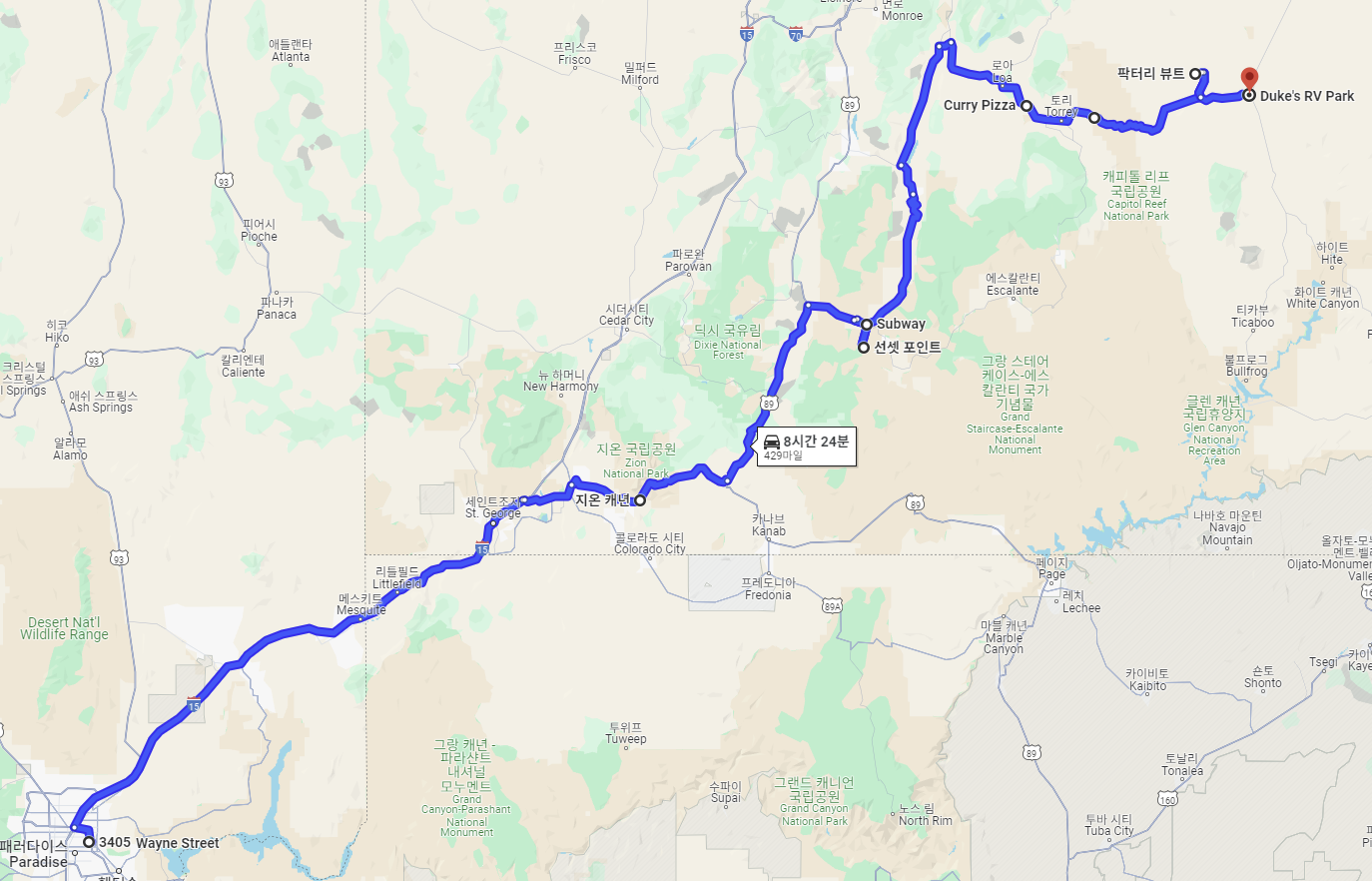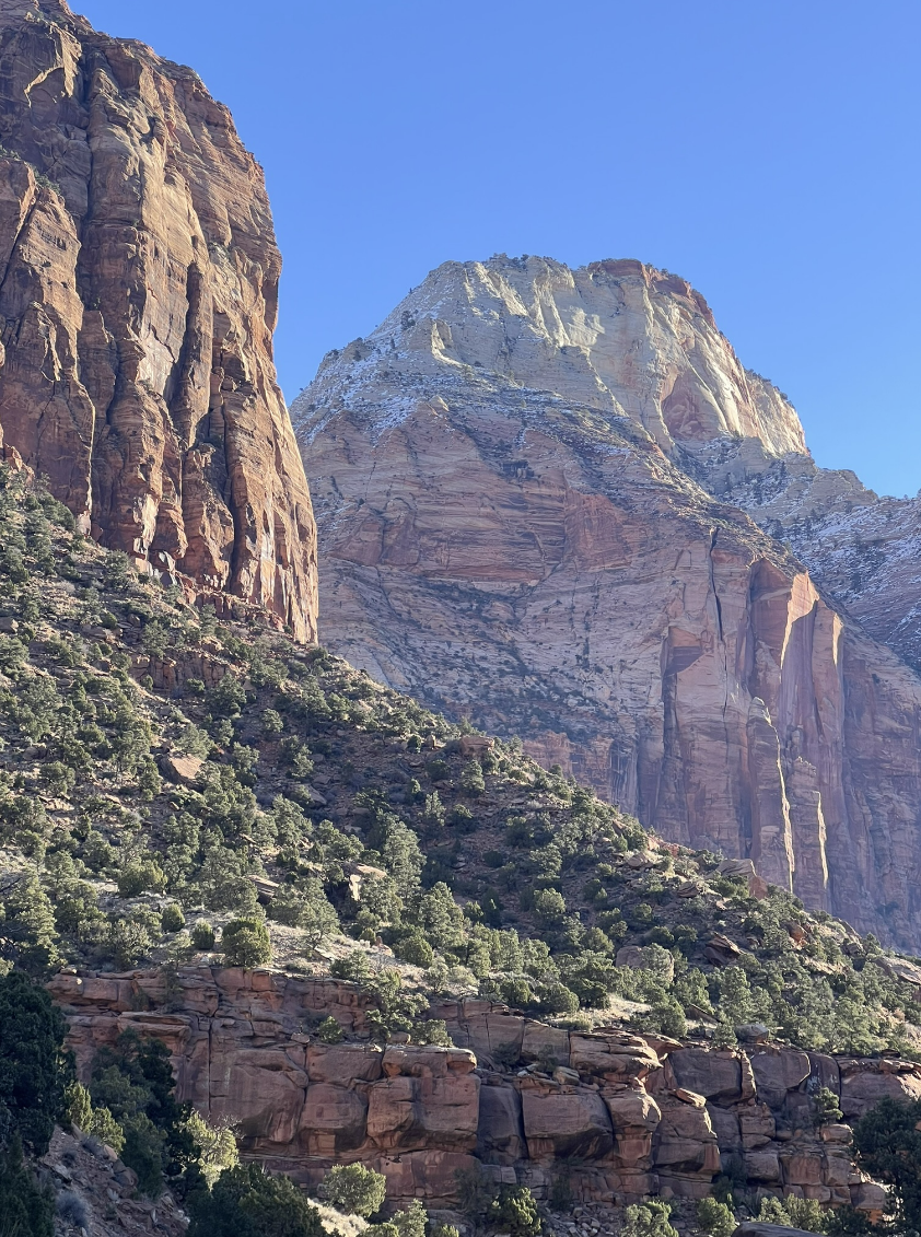 우리도 밥먹고 자동차도 밥먹이고 다시 계속 달리니 어느새 Zion canyon에 도착을 하였다. 뭐랄까 진짜 자연 그자체였다. 한국이였으면 국립공원 앞에 백숙파는 먹걸리집들이 쫙 있겠지만, 여기는 관리하는 사람들 및 information center 뺴고는 인간의 자취가 없었다. 짧은 구경을 마치고 다음 목적지를 향해 Zion canyon을 오르기 시작했다. 지나오며 생각해보니 Zion canyon에 여름에 왔으면 어떘을까 싶다. 그떄 오면 트레킹도 하면서 더 즐길 수 있었는데, 겨울이여서 우리는 스쳐 지나가는 관문? 같은 느낌이라 충분히 보지 못해서 너무 아쉬웠다. 그래도 구불구불 길을 오르며 보이는 자연의 웅장함. 다음은 꼭 날씨 좋을떄 와서 200% 즐기기를.